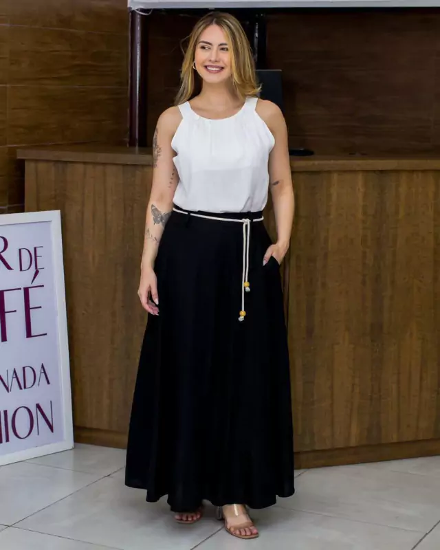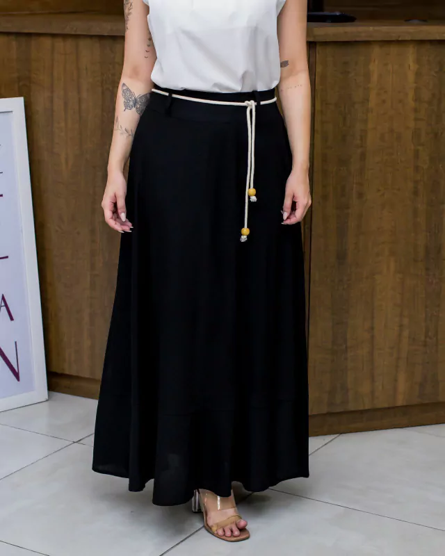 Saia Feminina Longa Linho Cor Cru